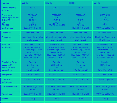 The Water Chillers by Gulf-dream are the epitome of high-quality, design, operation efficiency, and energy savings. They are made to work effectively under harsh and challenging conditions to meet the high demand. Whether you need a small water chiller Dubai for domestic use, or a large one for industrial use, Gulf-dream International offers the best water chillers you can find in Dubai. Coolex Water Chillers by Gulf-dream International recycles the water without disrupting the supply of water distribution. They offer a wide range of capacities from 2 TR to 50 Tr to suit the needs of different consumers. The refrigerant mostly used in Gulf-dreamβs coolers feature R22, R134m, and R407 which are known for their efficacy. If you are in search of reliable water chillers companies in UAE, reach out to us at Gulf-dream International. The technology used in the chillers manufactured by Gulf-dream ensures that the compressor remains in working condition for a long time ensuring durability with minimum maintenance.
